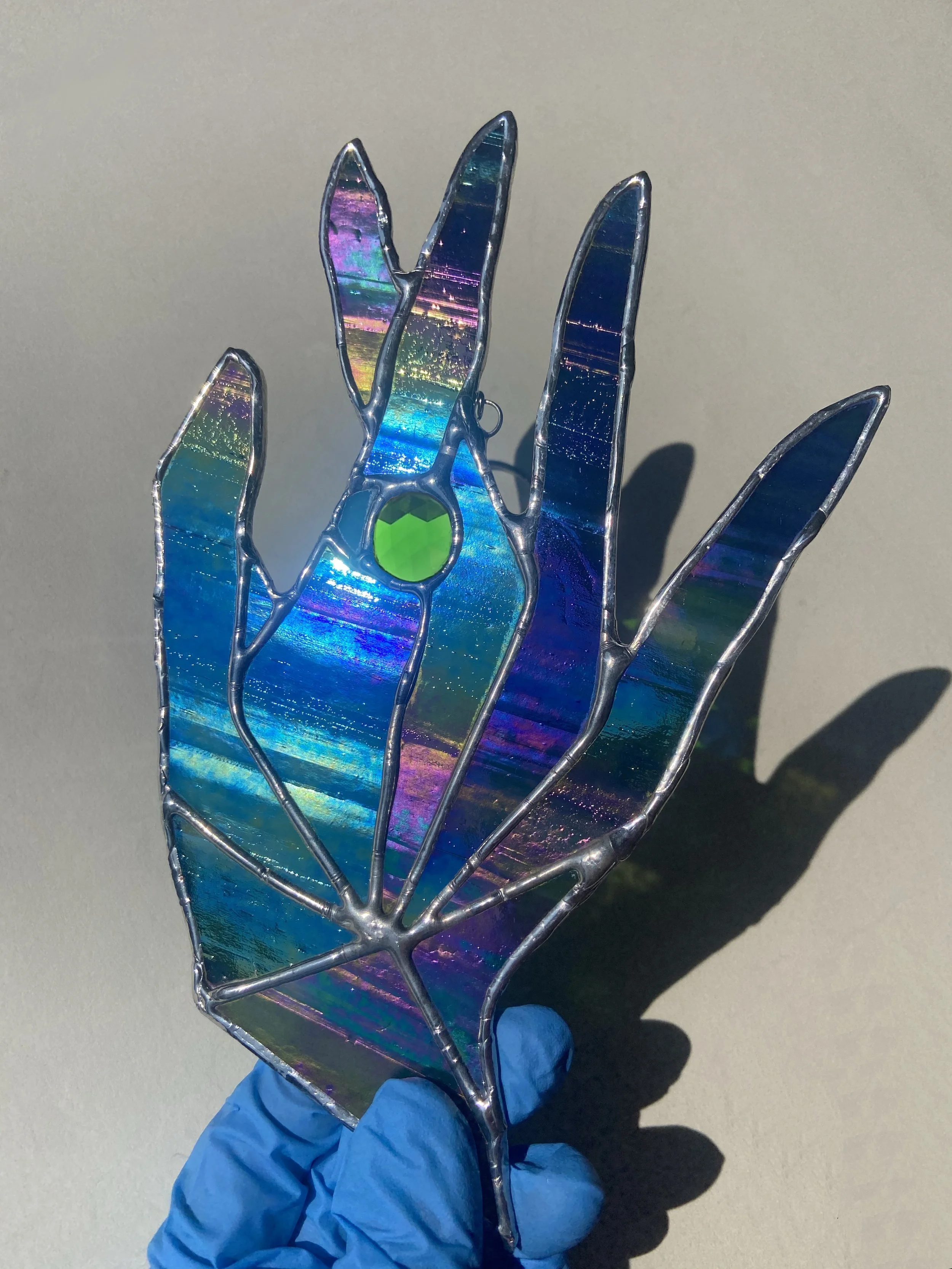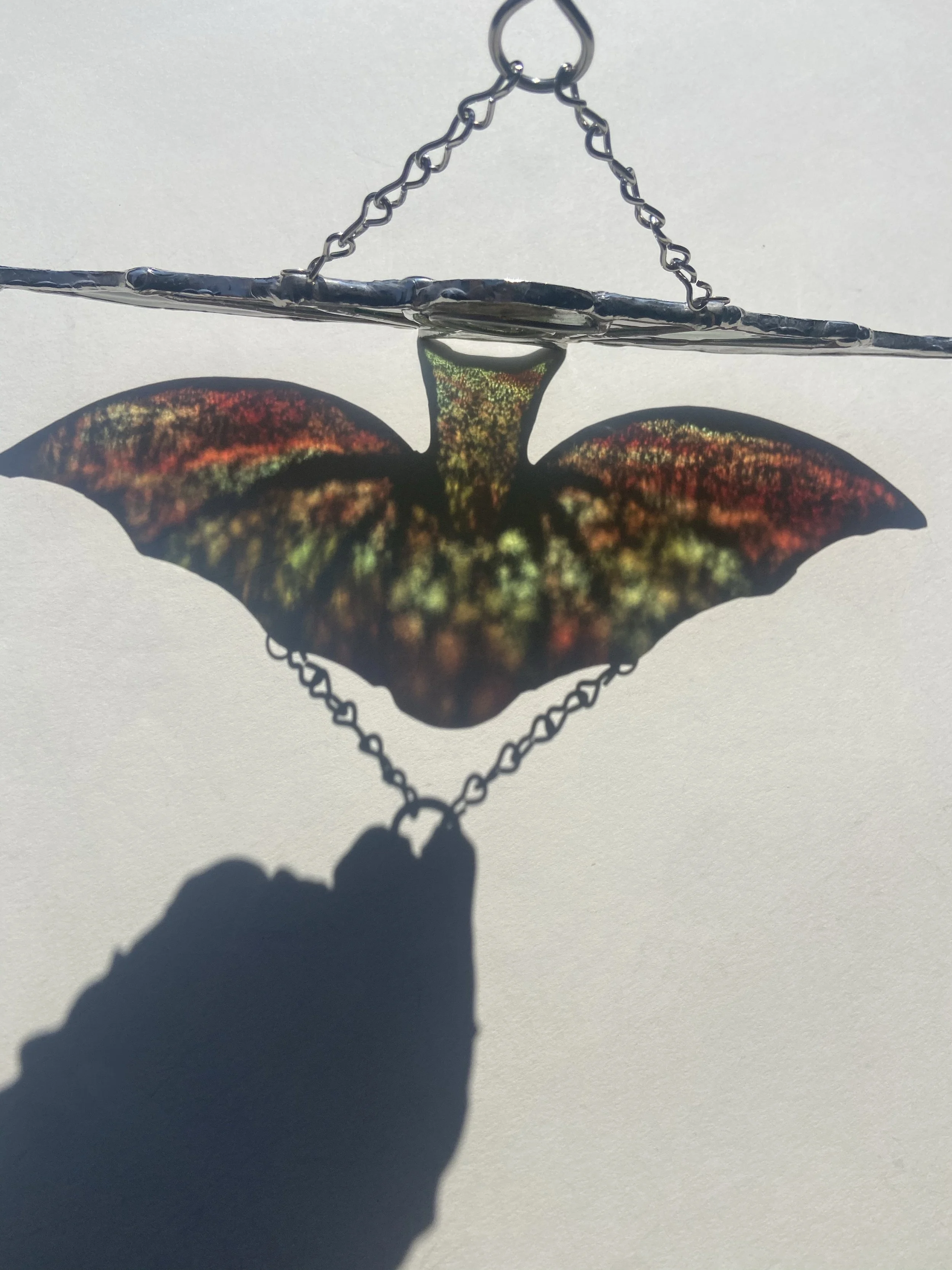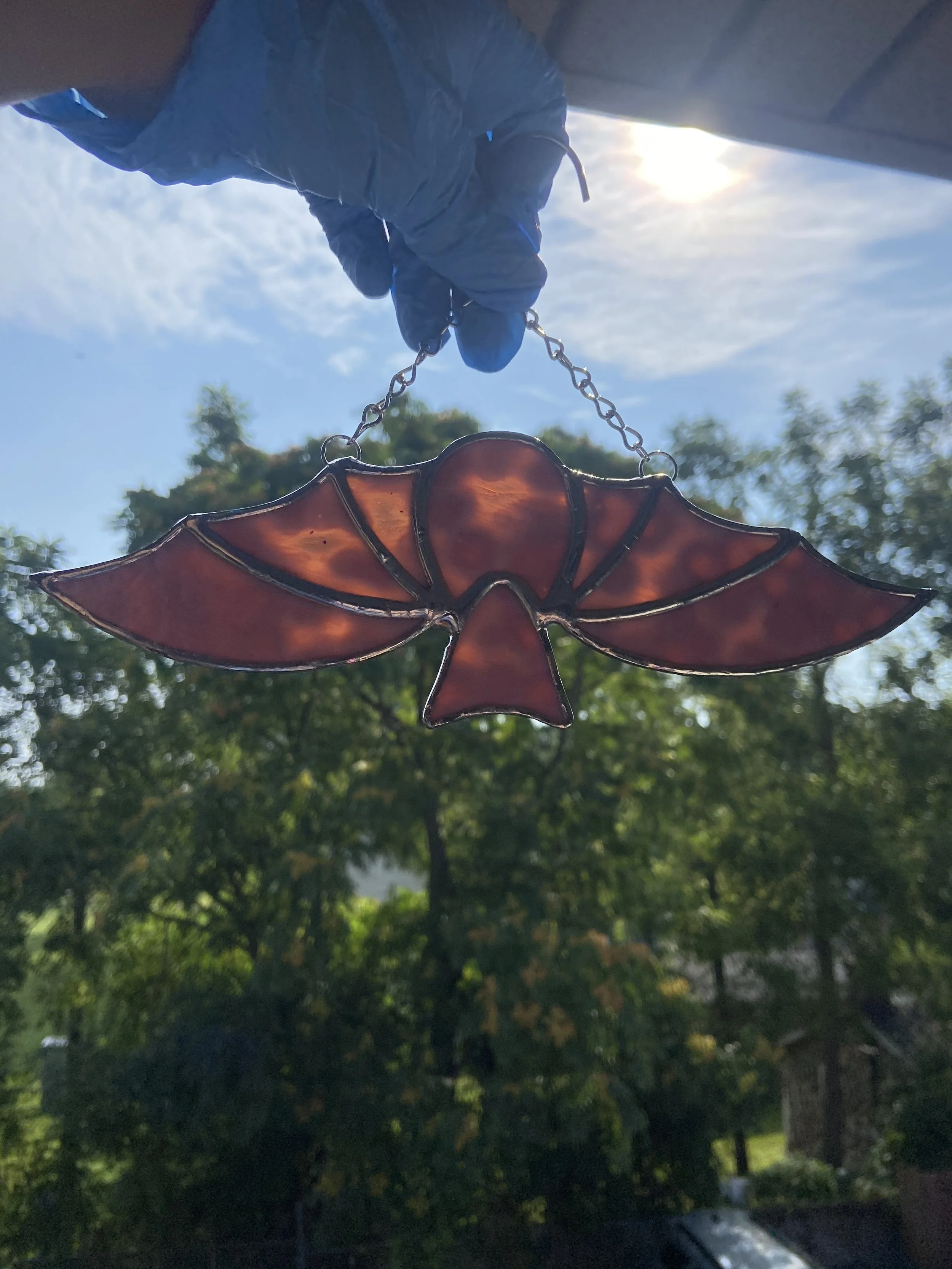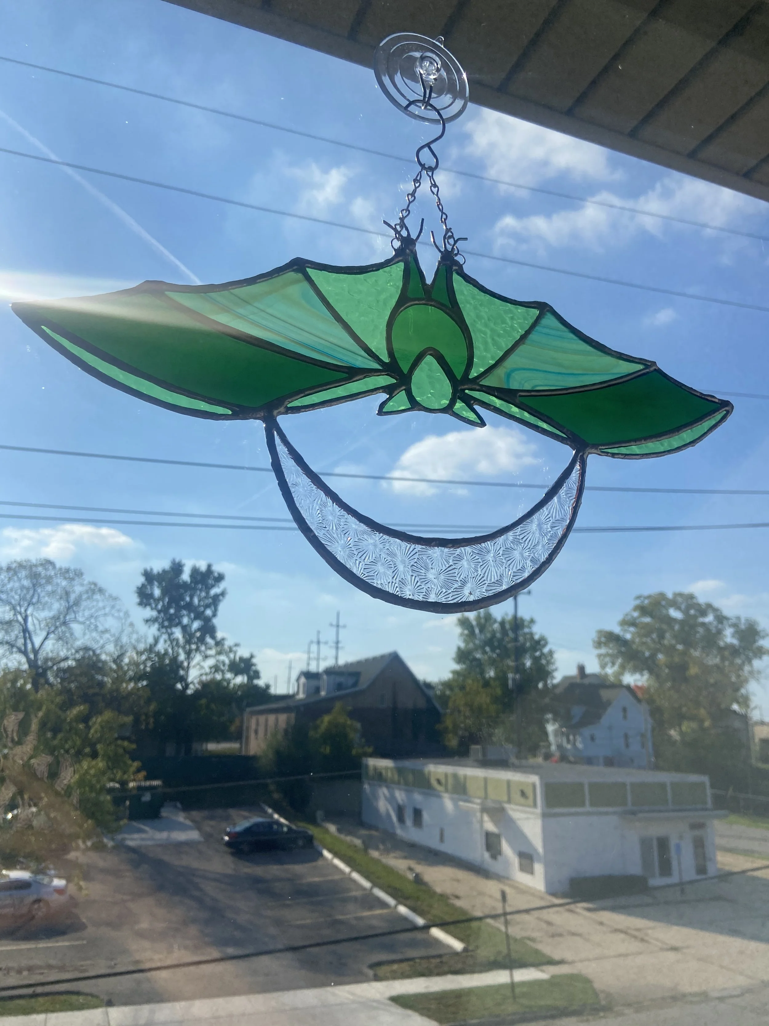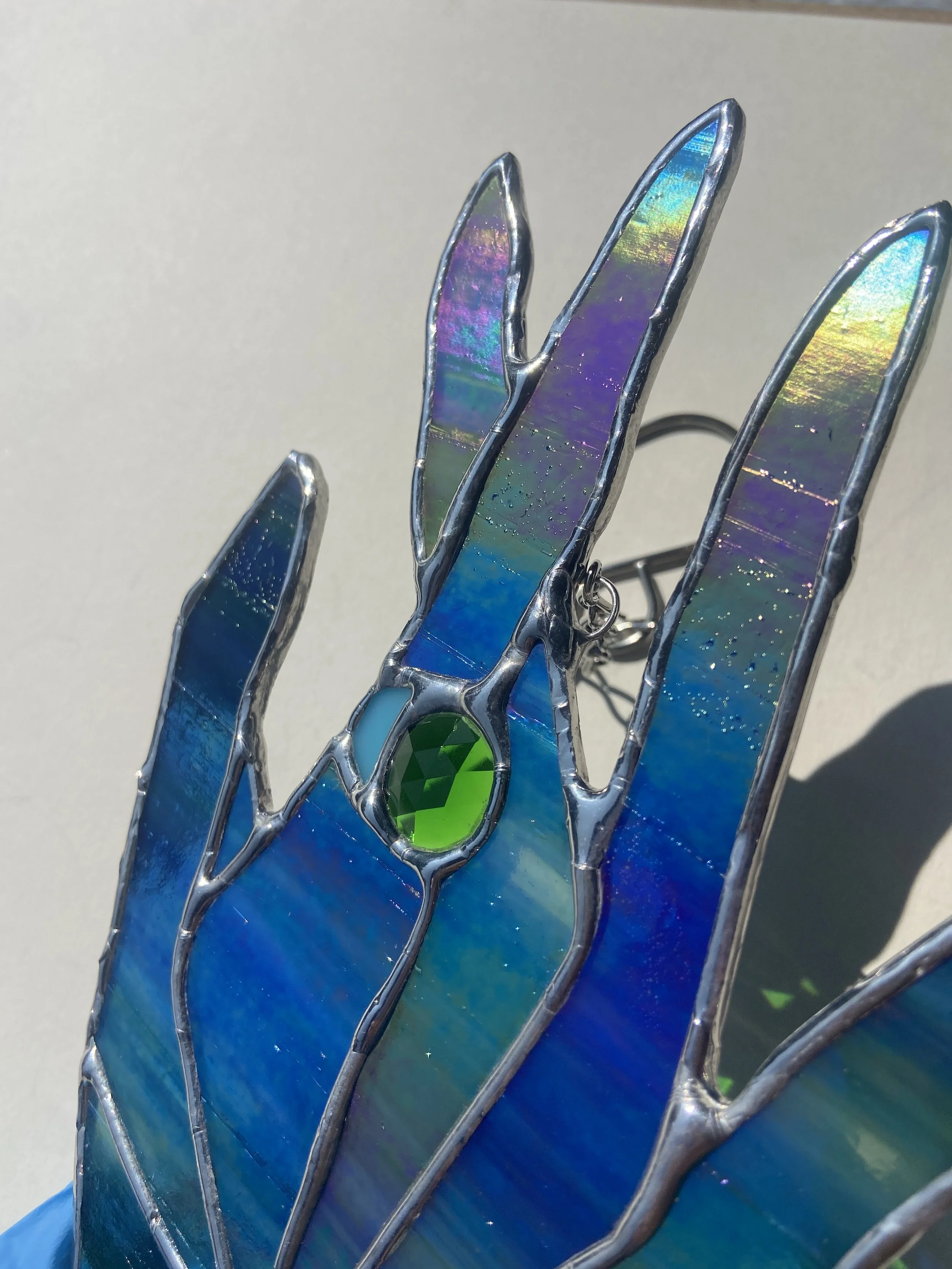Each piece will come with chains or other hanger to display. Pieces with jack chain can be shortened or lengthened by bending open links with any type of pliers to reach desired length. Most small hanging pieces will require hammering a nail (any nail that you can’t bend by hand) into either wall or wall above window. Heavier pieces that require more equipment will be given further instructions. I don’t recommend suction cups on windows as they often fail even with small pieces.
